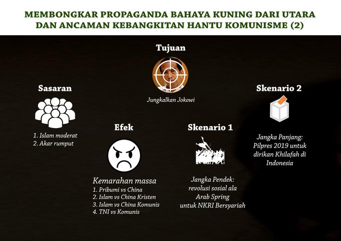 Mereka angkat seakan ideologi yang sudah usang itu akan bangkit kembali. Seperti berita tentang keinginan Jokowi untuk meminta maaf kepada keluarga korban PKI. Padahal faktanya Jokowi tak akan meminta maaf ke eks PKI. -- Sumber